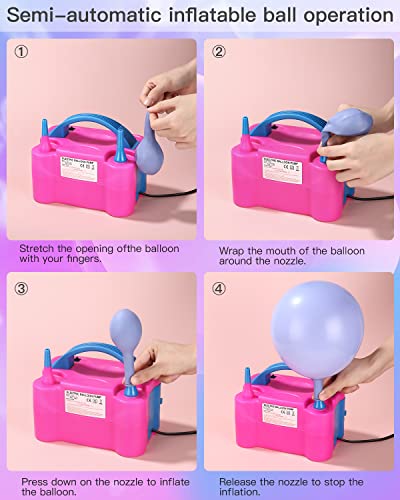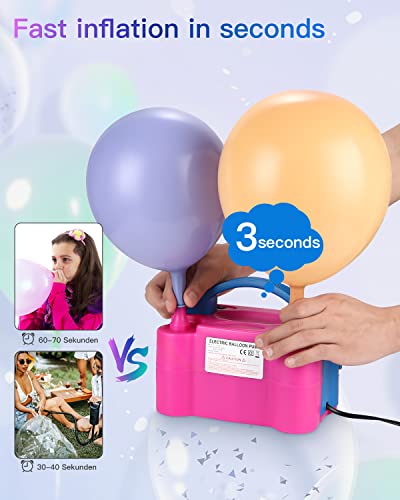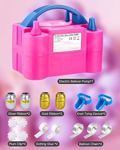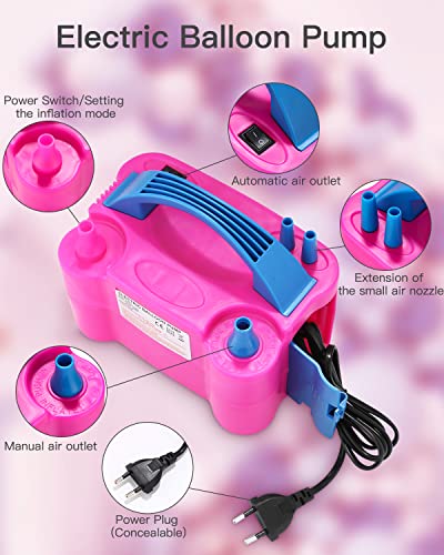 🎈【Voordelige verpakking】De ballonpompset bevat een elektrische ballonpomp, 2 ballonknopers, 3 rollen ballonketting, 2 rollen stippellijm, 2 rollen gouden band, 2 rollen zilveren band en 4 pruimenklemmen voor het modelleren van ballonnen. Met de automatische ballonpomp worden ballons sneller en eenvoudiger opgeblazen dan met conventionele handmatige pompen, zo heb je meer tijd voor het opbouwen van je feest.