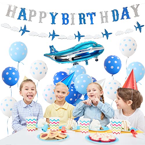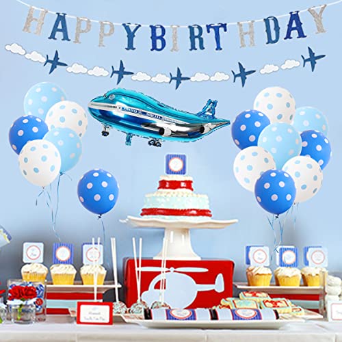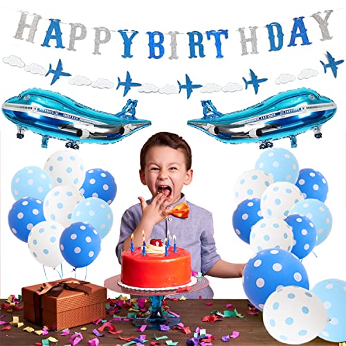 Specification: Vliegtuig Verjaardag Decoraties voor Jongens Blauwe Vliegtuig Ballonnen Glitter Gelukkige Verjaardag Banner Garland voor…