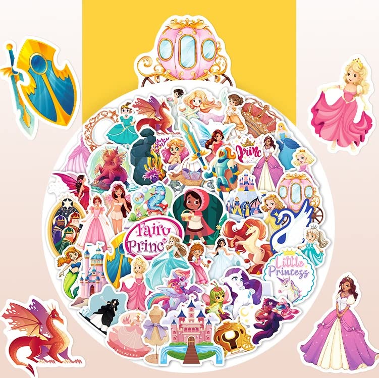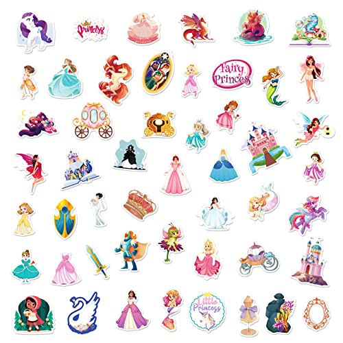 Mooie Princess Stickers |50PCS | Animation Film Theme Cartoon Stickers Pack, Leuke Stickers voor Laptop Skateboard Waterfles, Esthetische Vinyl Waterproof Decals