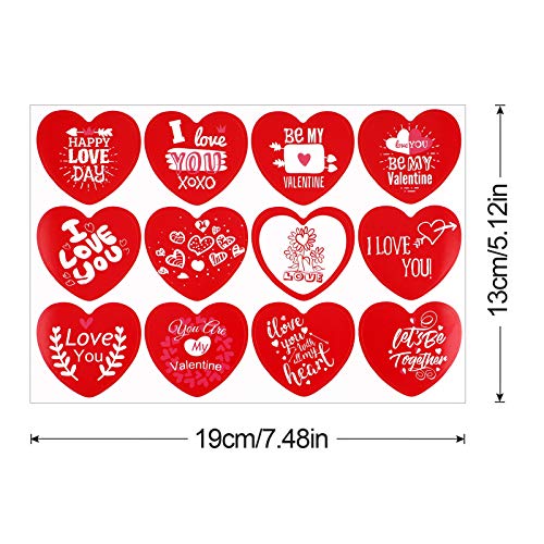 【Rode hartvormige liefdesstickers】 Er zijn 12 vellen Valentijnsdag stickers met in totaal 144 stuks, hartvormig ontwerp en Valentijnsdag zoete woorden. De kleuren zijn helder, helder en warm, zeer geschikt voor Valentijnsdag feest of huwelijksfeest.