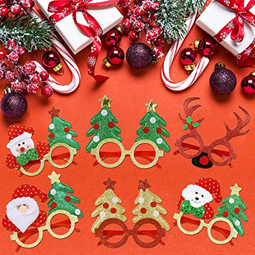 6 paar kerst glitter brillen kerst bril frame kostuum partij brillen kerstversiering voor Xmas partij gunst benodigdheden