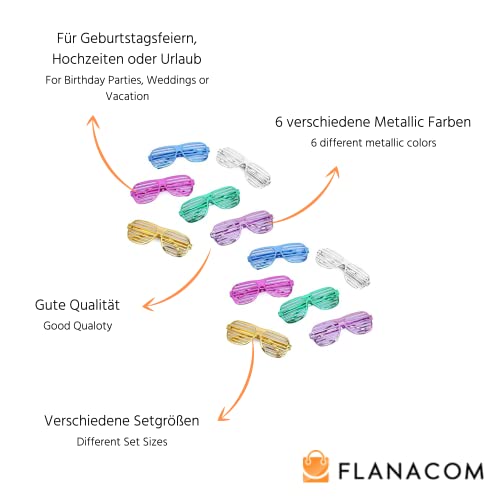 Specification: Flanacom Partybrillen, set van 24 in 6 verschillende metallic kleuren, partybril, attenbril, grappige brillen, grappige…