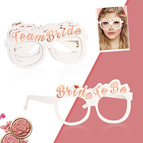 Specification: KAIAIWLUO Glitter JGA partybrilset, 1 stuks witte Bride to Be bril + 9 stuks champagne-team bride bril vrijgezellenfeest…
