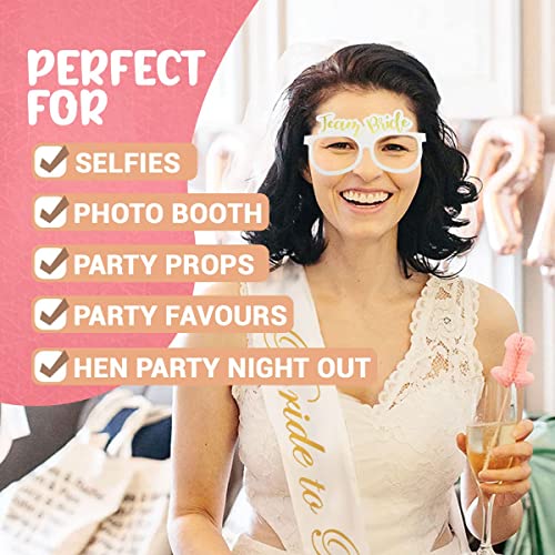 Hen Party Accessoires Inclusief: 10 stuks vrijgezellenfeesten. 1 x witte bruidsbril en 9 x champagne-teambruidsglazen. Een geweldig accessoire voor vrijgezellenfeesten, meisjesavonden en bruidsdouches.