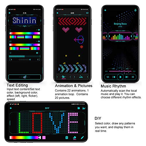 ★【Snelle en eenvoudige bediening】- Via de Shining Glasses app kun je je bril via BT met je smartphone verbinden. Bereik heel eenvoudig tekstbewerking, teksteffecteninstelling, animatie- en beeldinstelling en doe-het-zelf-afbeelding.