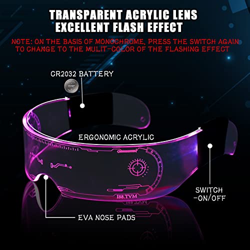 Muti-color Cool Glasses: deze feestbril is ontworpen met 7 enkele kleuren en gemengde kleuren die u kunt kiezen. Er is een schakelknop aan beide zijden van elk frame die de aan / uit-kleur regelt, u kunt een geschikte modus kiezen om op te lichten. Het is zacht voor je ogen en belast je ogen niet.