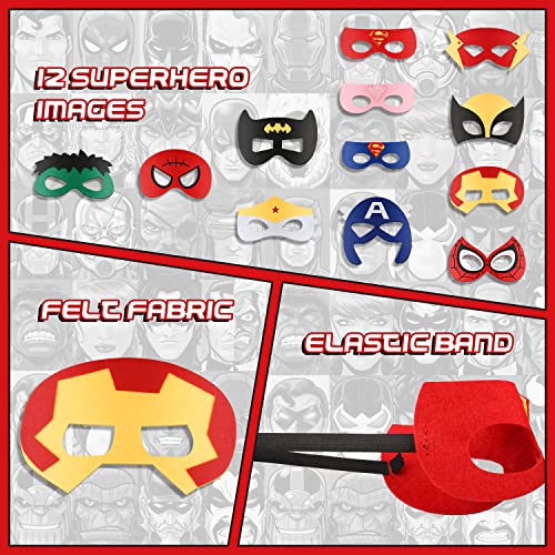 Party Maskers Superhero 12 pcs, Vilten Maskers voor Kinderen Superhero, Feestmaskers Superhero, Kindermaskers, Cosplay…