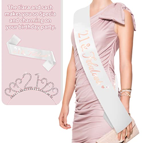 21e verjaardagscadeaus voor haar: het 21e verjaardagssjaal en kristallen kroon is ontworpen voor eindelijk 21 meisje om het 21e verjaardagsfeestje van vrouwen te vieren, mooie en elegante decoratie, mooi past bij de warme en zoete verjaardagsfeestsfeer
