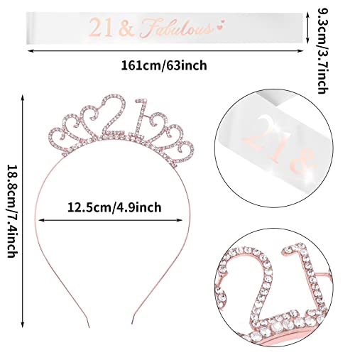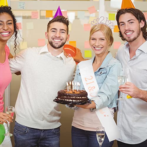 Afmetingen: de grootte van de glitterverjaardagskroon is ca. 19 x 13 cm/7,5 x 2,9 inch, de grootte van de sjerp is ongeveer, 161 x 9 cm/ 63 x 3,5 inch. Een maat geschikt voor de meeste meisjes en vrouwen, perfect voor 21e verjaardagsfeestaccessoires