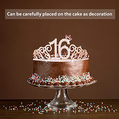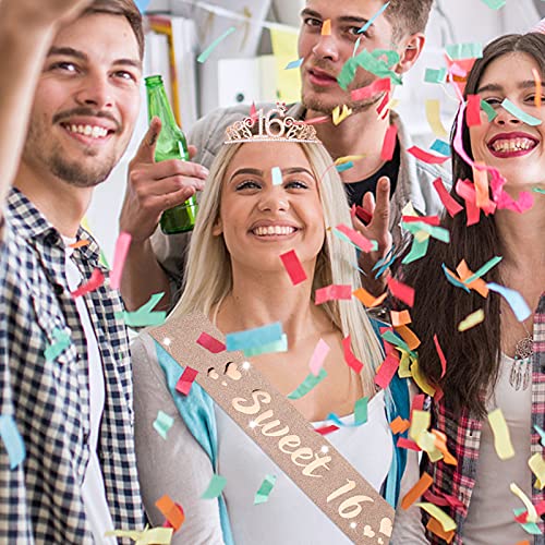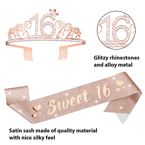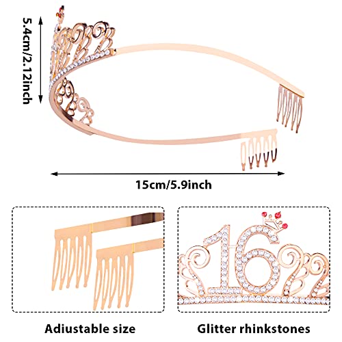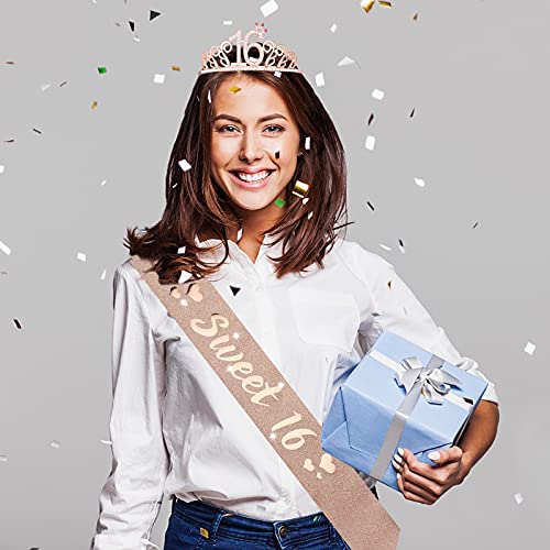 Aster Zoete 16 Tiara en sjerp voor meisjes, verjaardag strass kroon 16 & decoratieve satijnen sjerp, zoete 16 jaar…