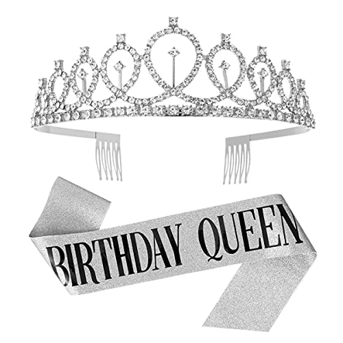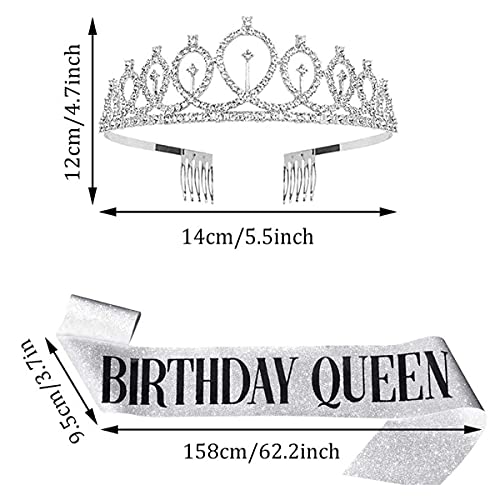 ❤ 【Pakket inclusief】 Je ontvangt 2 accessoires voor verjaardagsfeestjes, verjaardagstrass kroontiara (12 * 14 * 5 cm), verjaardagssjerp (158 * 9,5 cm)
