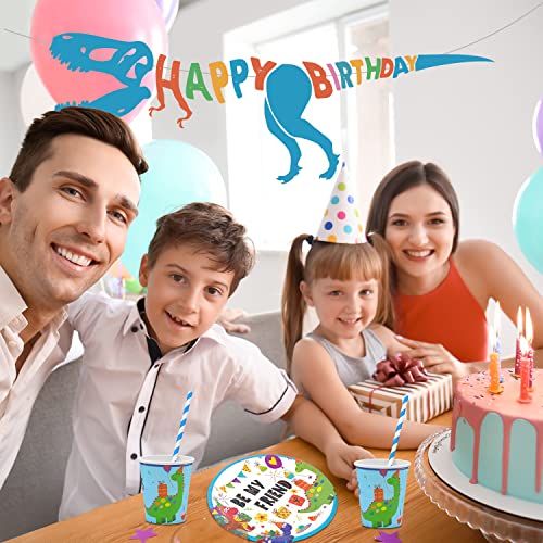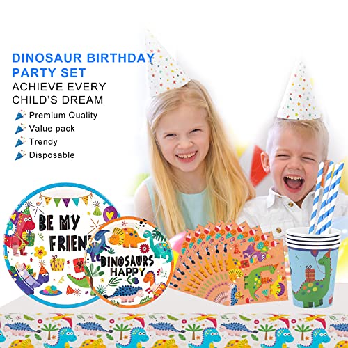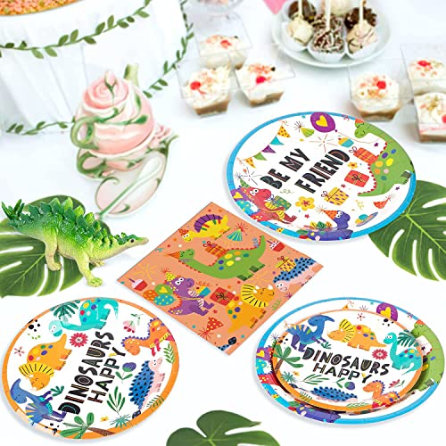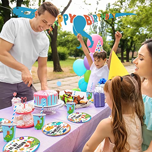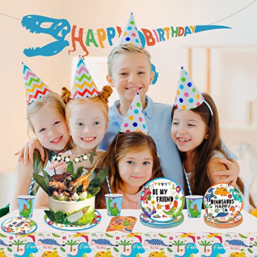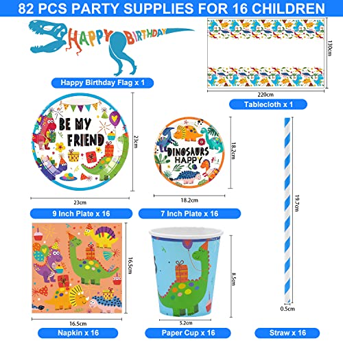 Aischens Partyservies, dinosaurus, verjaardagsfeestset voor 16 gasten, 82 stuks dino-verjaardagsdecoratie…