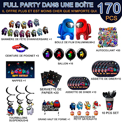 Amongs Us Verjaardags Feest Set,170pcs Among Us Verjaardag Decoratie&Servies Set- Onder Ons Thema Banner Ballonnen Among…