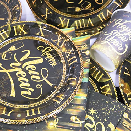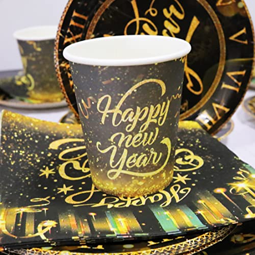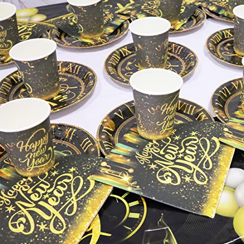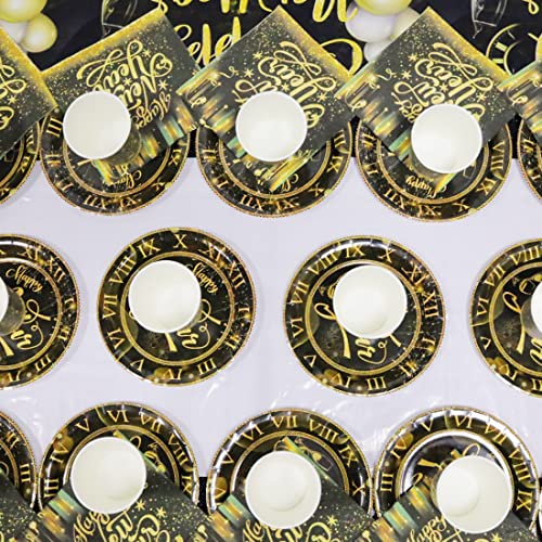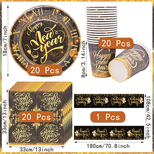 Huaxintoys Happy New Year Partyservies, zwart goud, inclusief 1 tafelkleed, 20 dessertborden, 20 bekers en 20 servetten…