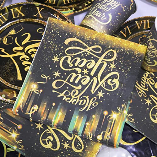 🎉【Zwart-gouden design】: deze set biedt een prachtige combinatie van zwart en goud. Klassieke goudstempelverf met vrolijk nieuwjaar. Je zult je gasten in ieder geval verrassen met deze elegante en elegante designs.