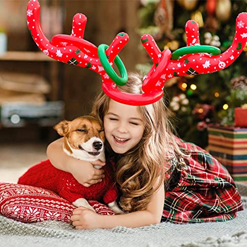 【Pakket inbegrepen】 2 opblaasbare rendiergewei hoeden met kinriem, gemakkelijk mee te nemen; 8 grote opblaasbare ringen (4 rood + 4 groen) en 1 inflator.