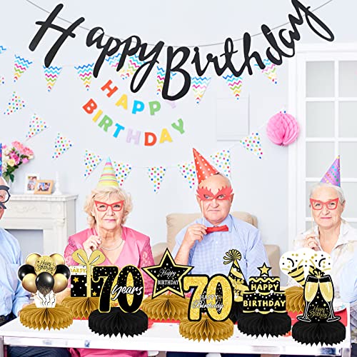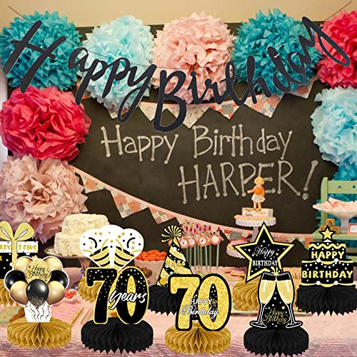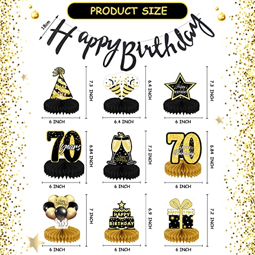 70e Verjaardag Tafel Middenstukken & Gelukkige Verjaardag Banner, 9 Stuks Zwart Goud Verjaardag Tafel Honingraat…