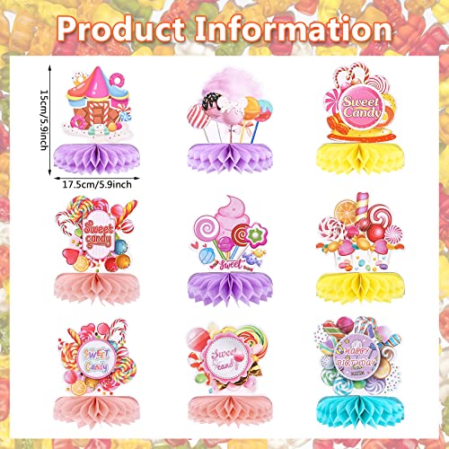 [Overvloedige hoeveelheid] u ontvangt 9 stuks honingraatdecoraties met snoepthema, nieuw ontwerppatroon en diverse vormen van de snoepfeestdecoraties worden de glanzende en schattige feestbenodigdheden voor het feest