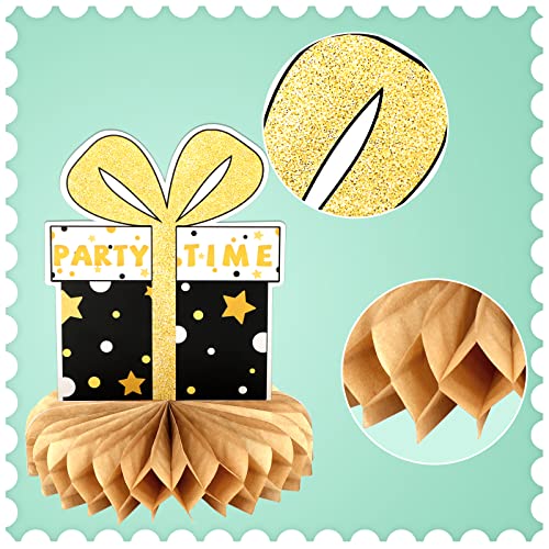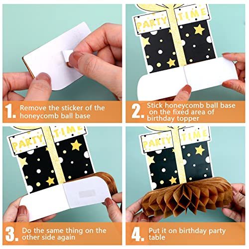 Specification: KINBOM 9st Verjaardag Honingraat Decoratie, Honingraat Centerpieces Zwart en Goud Verjaardag Tafel Toppers…