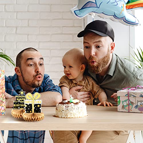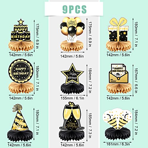 KINBOM 9st Verjaardag Honingraat Decoratie, Honingraat Centerpieces Zwart en Goud Verjaardag Tafel Toppers…