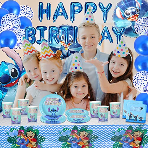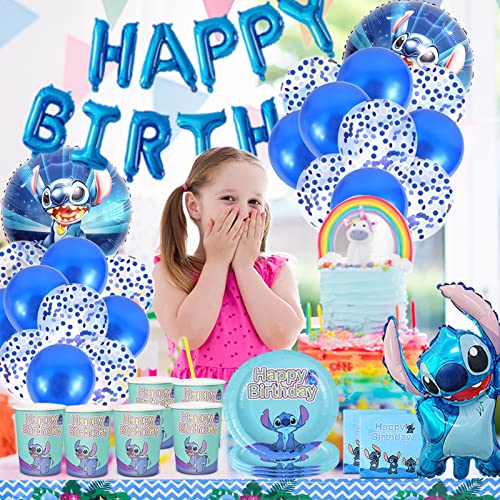 Forhome Lilo Stitch Kinderverjaardagsdecoratie, 77 stuks, Lilo Stitch feestaccessoires, verjaardagsfeestdecoraties…