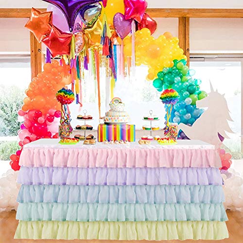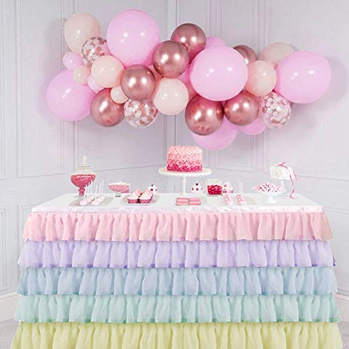 Specification: MAGT Tafelrok voor bruiloft, meerdere lagen, tule, tafelrok, kleurrijke feesttafelrokken, polyester, tafelkleed voor…