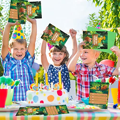 【Pakket inclusief】 Cartoon uitnodigingskaart inclusief 20 jungledieren verjaardagsfeest uitnodigingen, geschikt voor verjaardagsfeestjes voor jongens en meisjes.