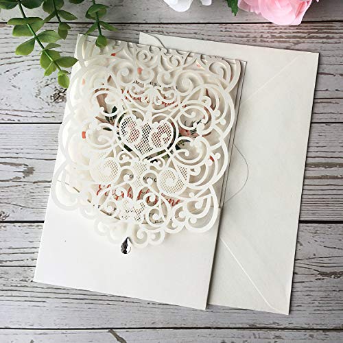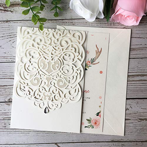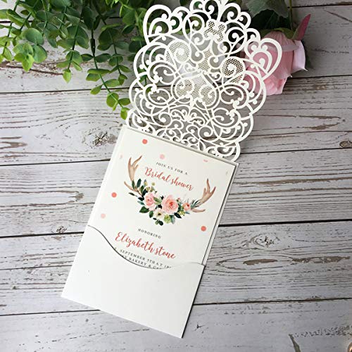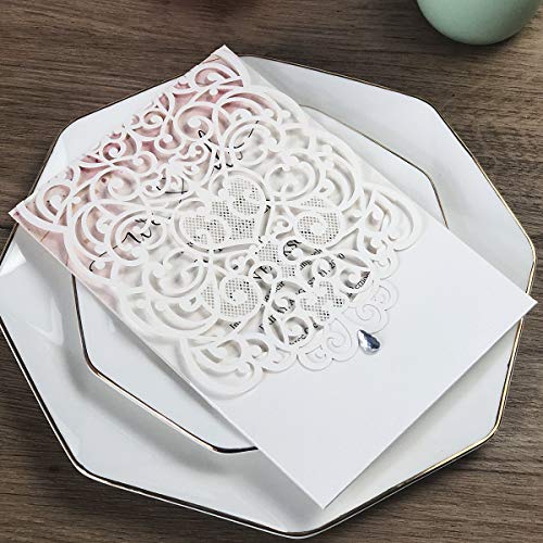 Specification: Kuchynee 20 STKS Roze Laser Cut Holle Flora Bruiloft Uitnodiging Kaarten met Strass voor Elegante Bruiloft Bruids Douche…