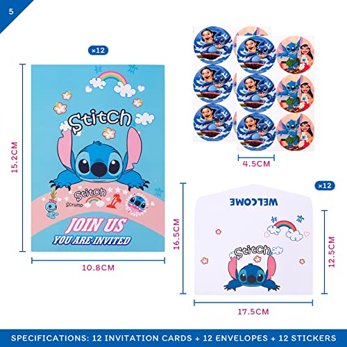 Specification: Lilo Stitch Uitnodigingskaarten voor kinderverjaardag, 12 uitnodigingen, verjaardag + 12 enveloppen + 12 stickers…