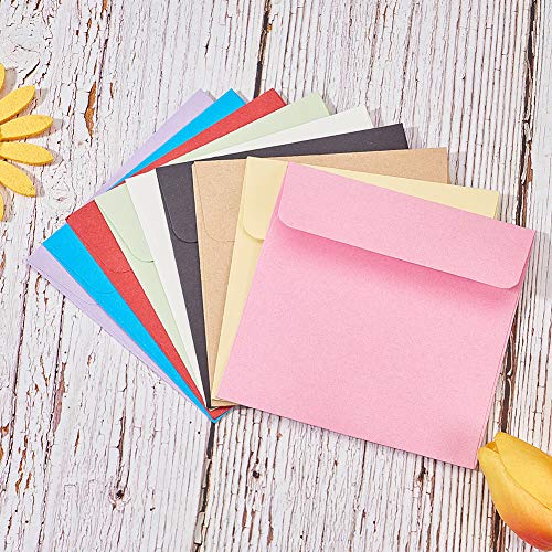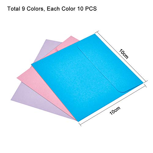Specification: PandaHall 90 stuks vierkante papieren envelop 10 cm cadeau uitnodiging envelop voor bruiloft, 9 kleuren